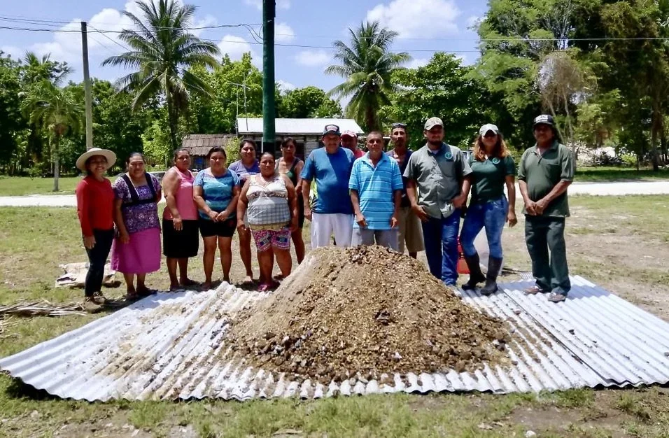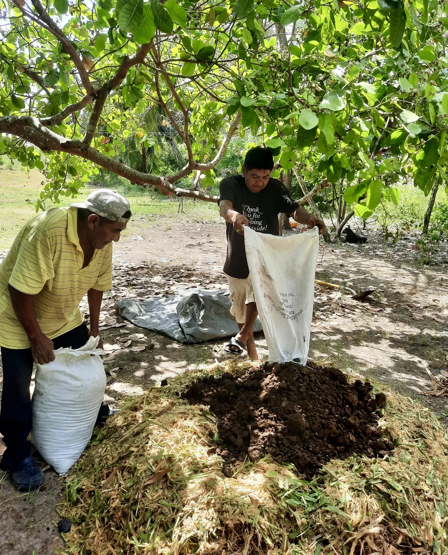 SHI's Belize Field Trainers teach the community of Patchakan how to make bokashi.